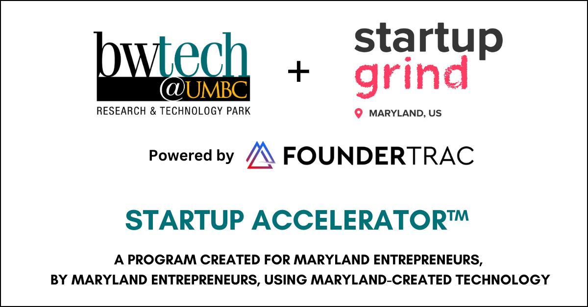 A free 14-week virtual accelerator offered in partnership with Innovation Maryland and FounderTrac. Meets biweekly on Wednesdays from 5-6:30 PM with a cohort of up to 10 startups. Culminates in a Virtual Startup Showcase in May. Designed to help early-stage entrepreneurs validate their business models and build a foundation for growth. Also offered at bwtech@UMBC North campus.